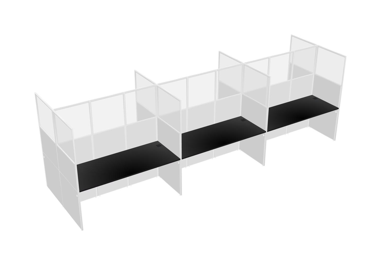 Black Shared Rectangular Office Cubicle Panel System For 6 Persons