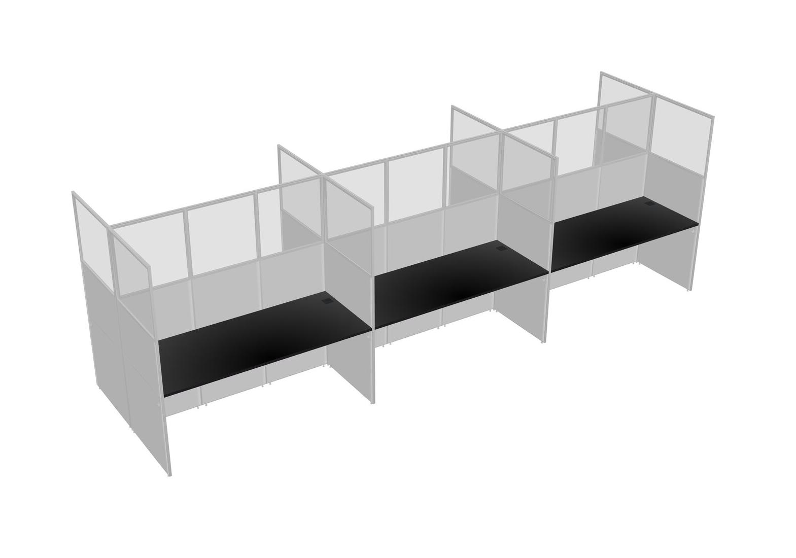 Black Shared Rectangular Office Cubicle Panel System For 6 Persons