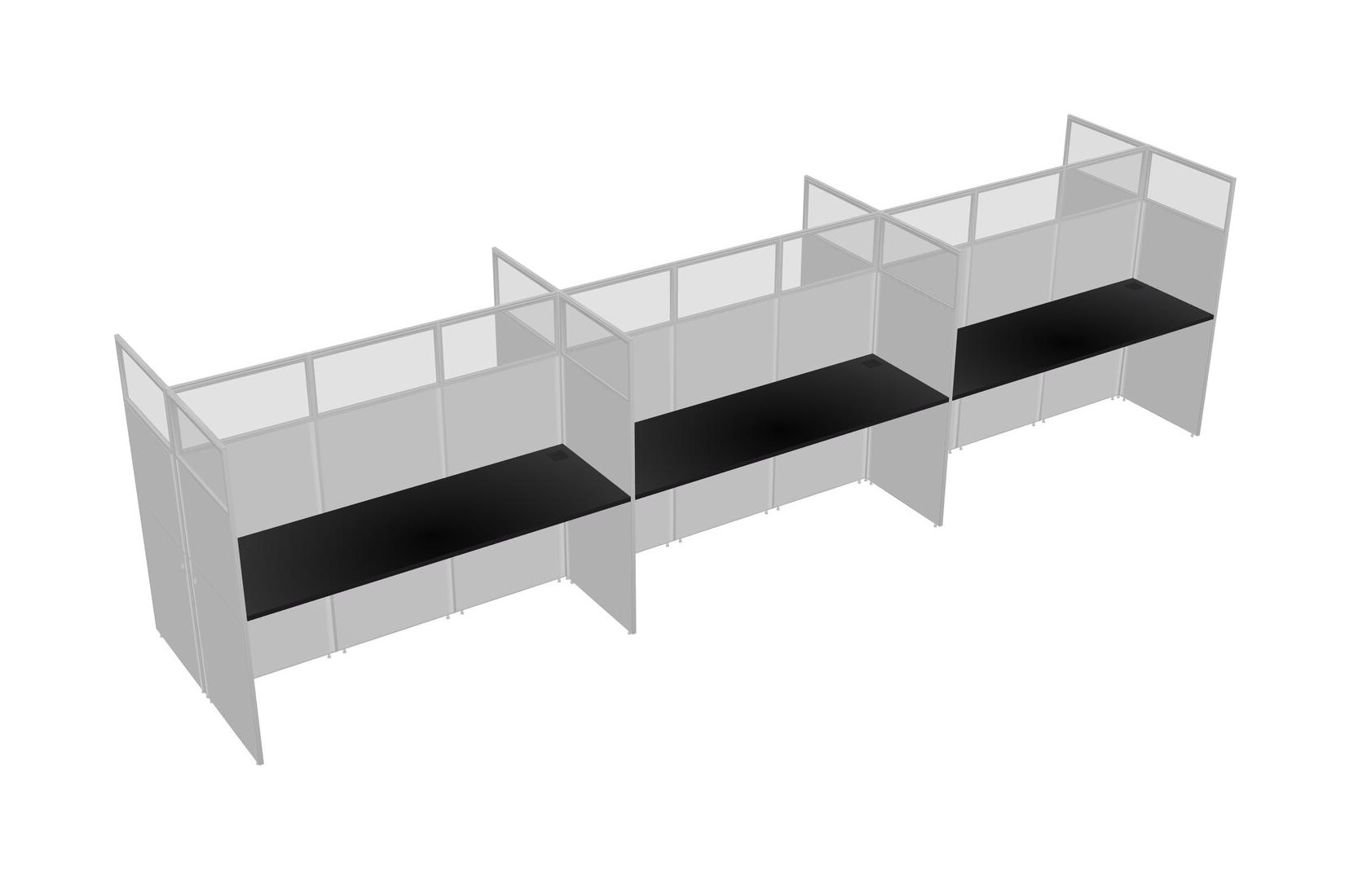 Black Shared Rectangular Office Cubicle Panel System For 6 Persons