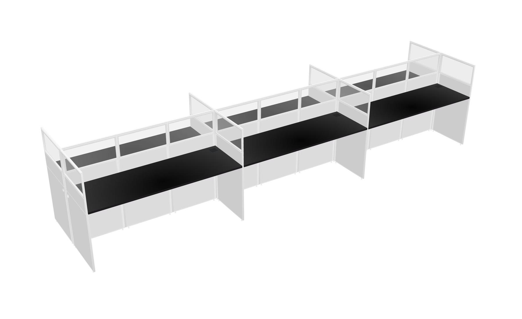 Black Shared Rectangular Office Cubicle Panel System For 6 Persons