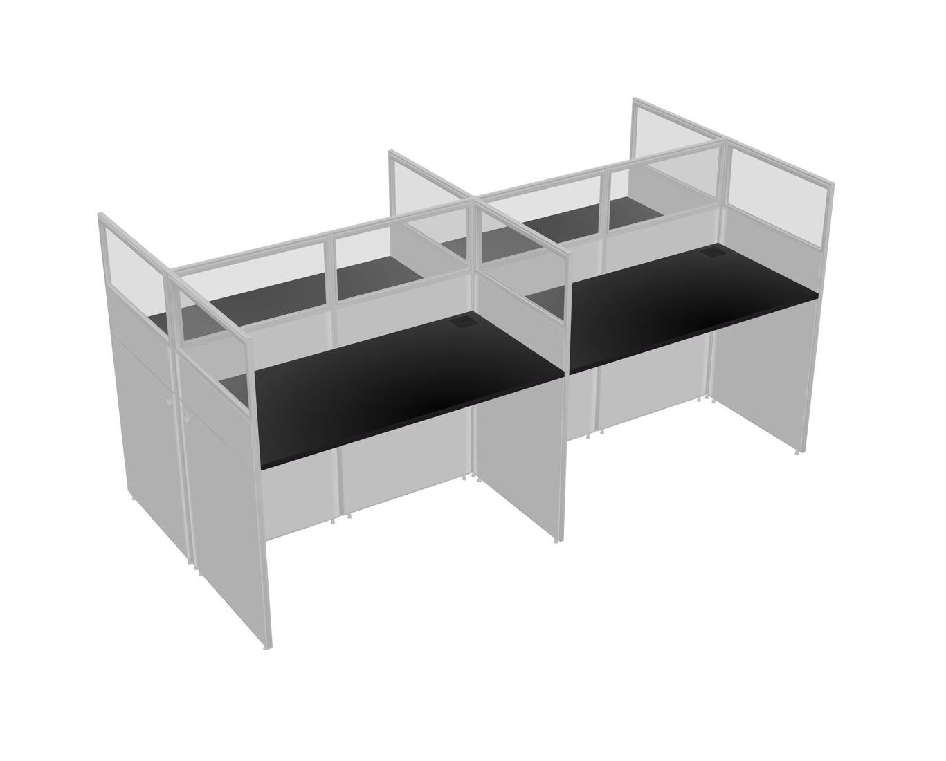 Black Shared Rectangular Office Cubicle Panel System For 4 Persons
