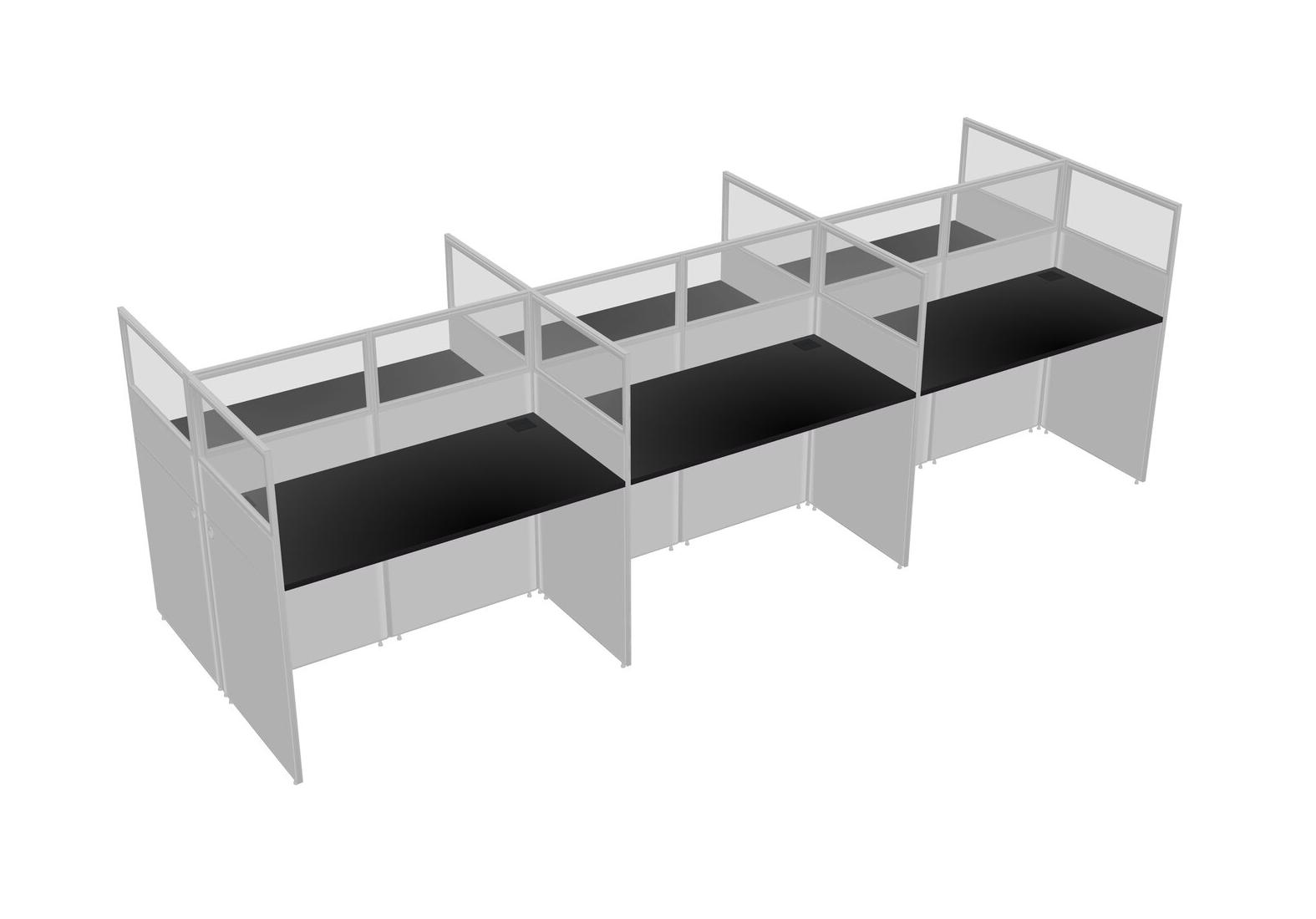 Black Shared Rectangular Office Cubicle Panel System For 6 Persons