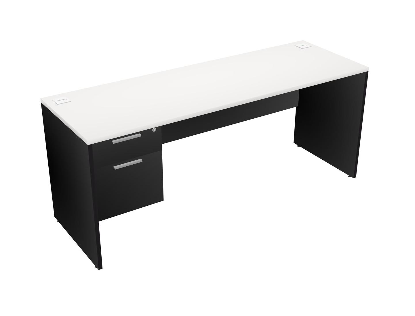 White Rectangular Office Desk Plus Black Hanging Drawers