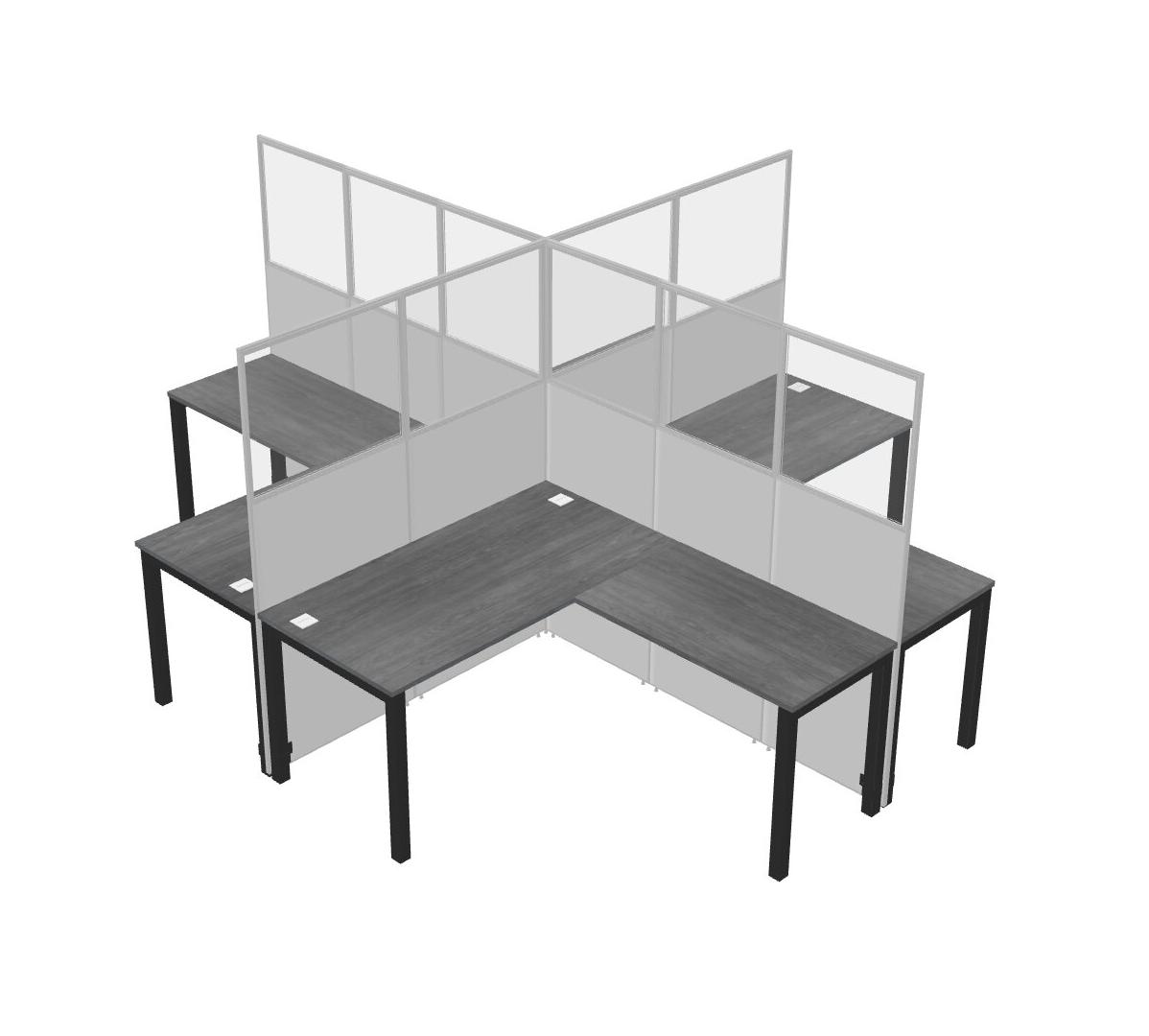 Grey L-shaped Quad Office Cubicles