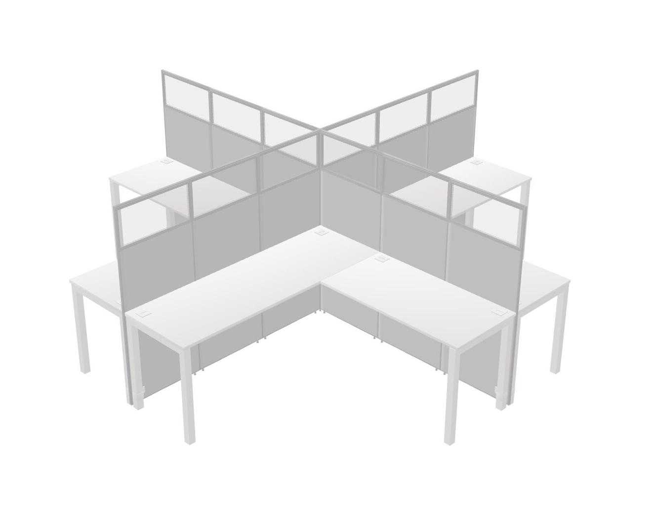 White L-shaped Quad Office Cubicles