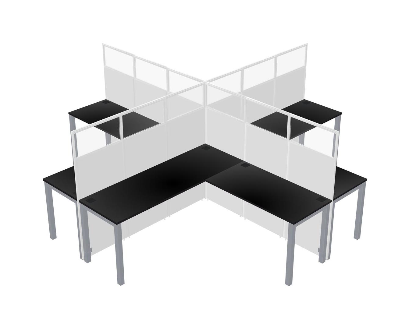 Black L-shaped Quad Office Cubicles