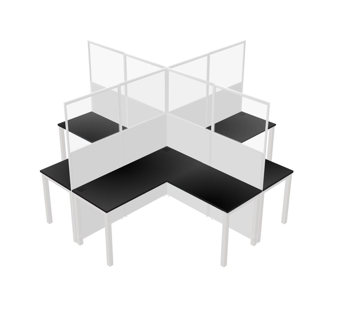 Black L-shaped Quad Office Cubicles