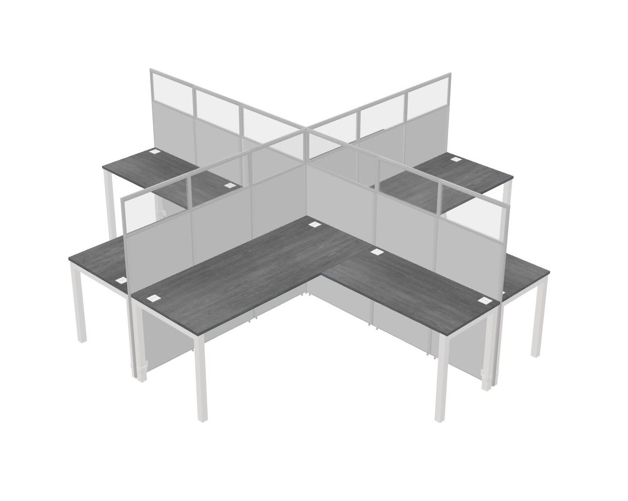 Grey L-shaped Quad Office Cubicles