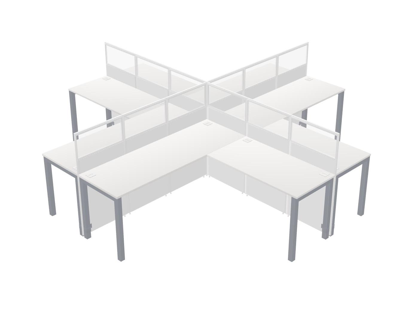 White L-shaped Quad Office Cubicles
