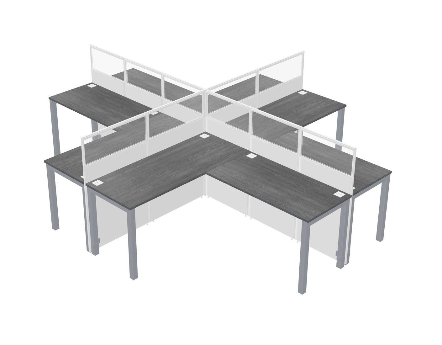 Grey L-shaped Quad Office Cubicles
