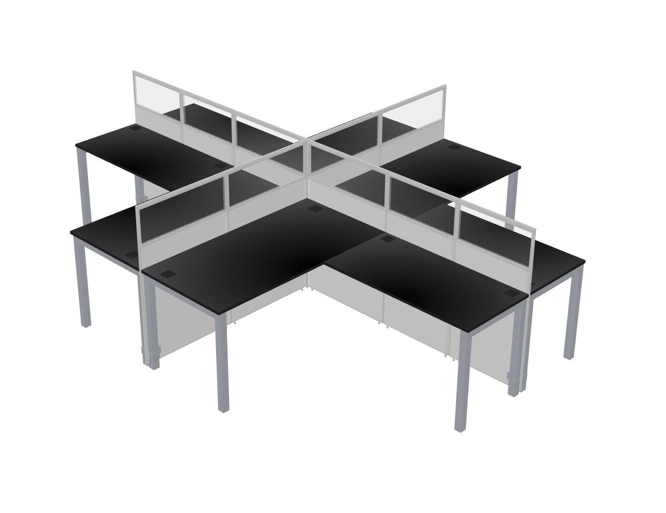 Black L-shaped Quad Office Cubicles
