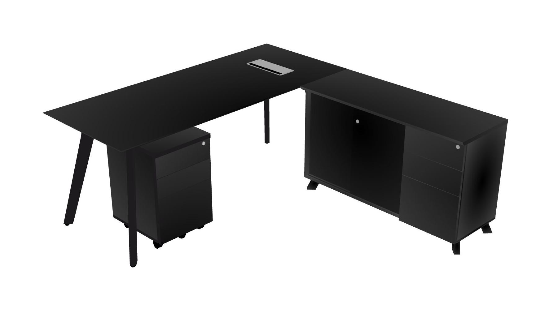 Slick Black L-shaped Office Desk With Cabinet