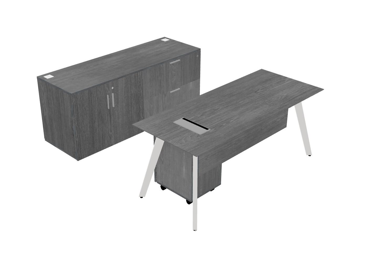 Slick Grey Parallel Office Desk With Credenza + Modesty Panel + Mobile Drawers