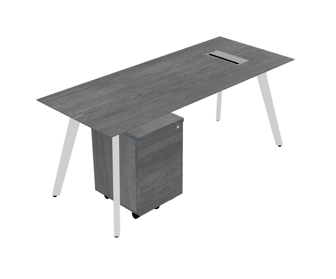 Slick Grey Rectangular Office Desk + Mobile Drawers