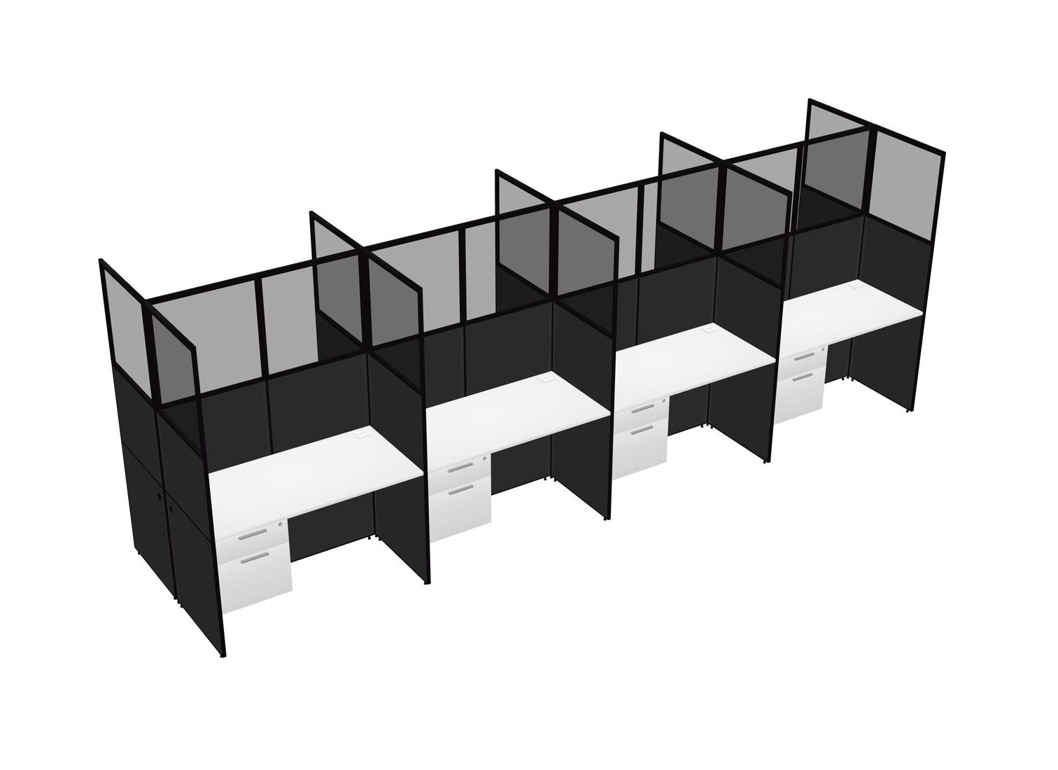 White Shared Rectangular Office Cubicle Panel System With Hanging Drawers For 8 Persons