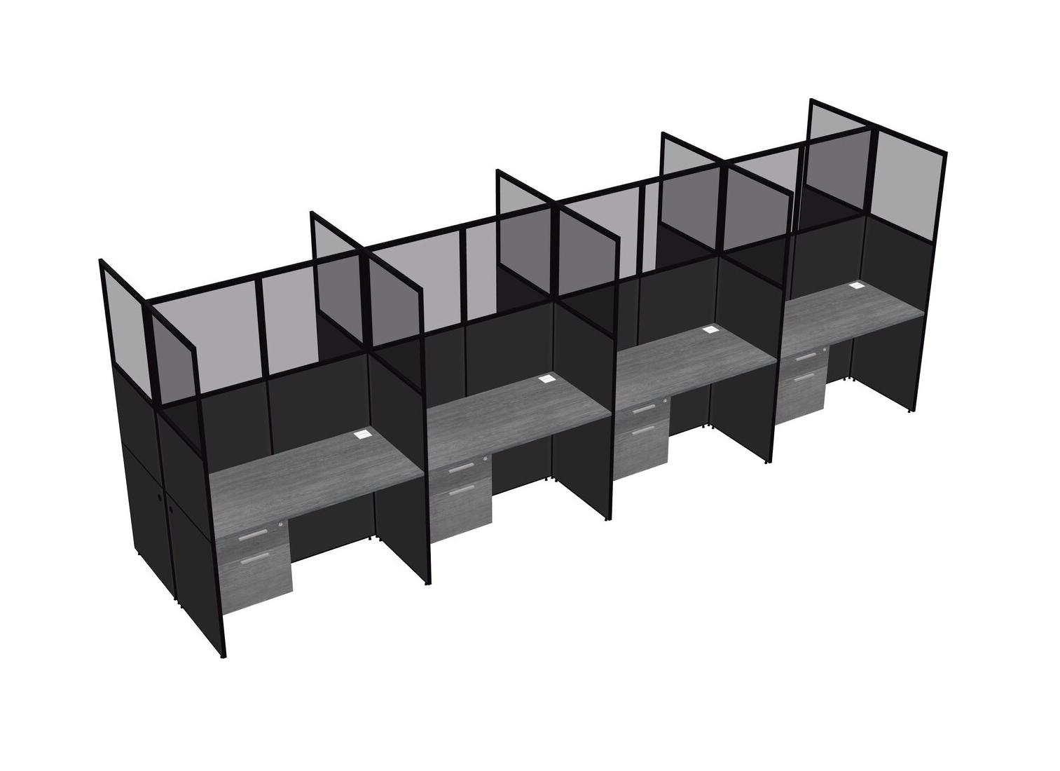Grey Shared Rectangular Office Cubicle Panel System With Hanging Drawers For 8 Persons