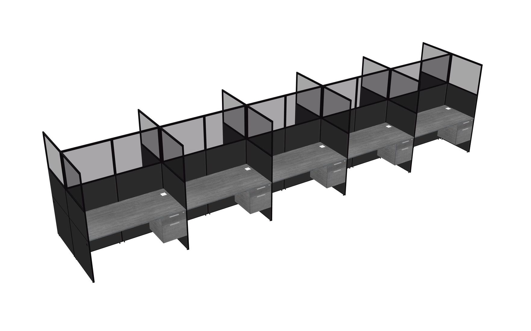 Grey Shared Rectangular Office Cubicle Panel System With Hanging Drawers For 10 Persons