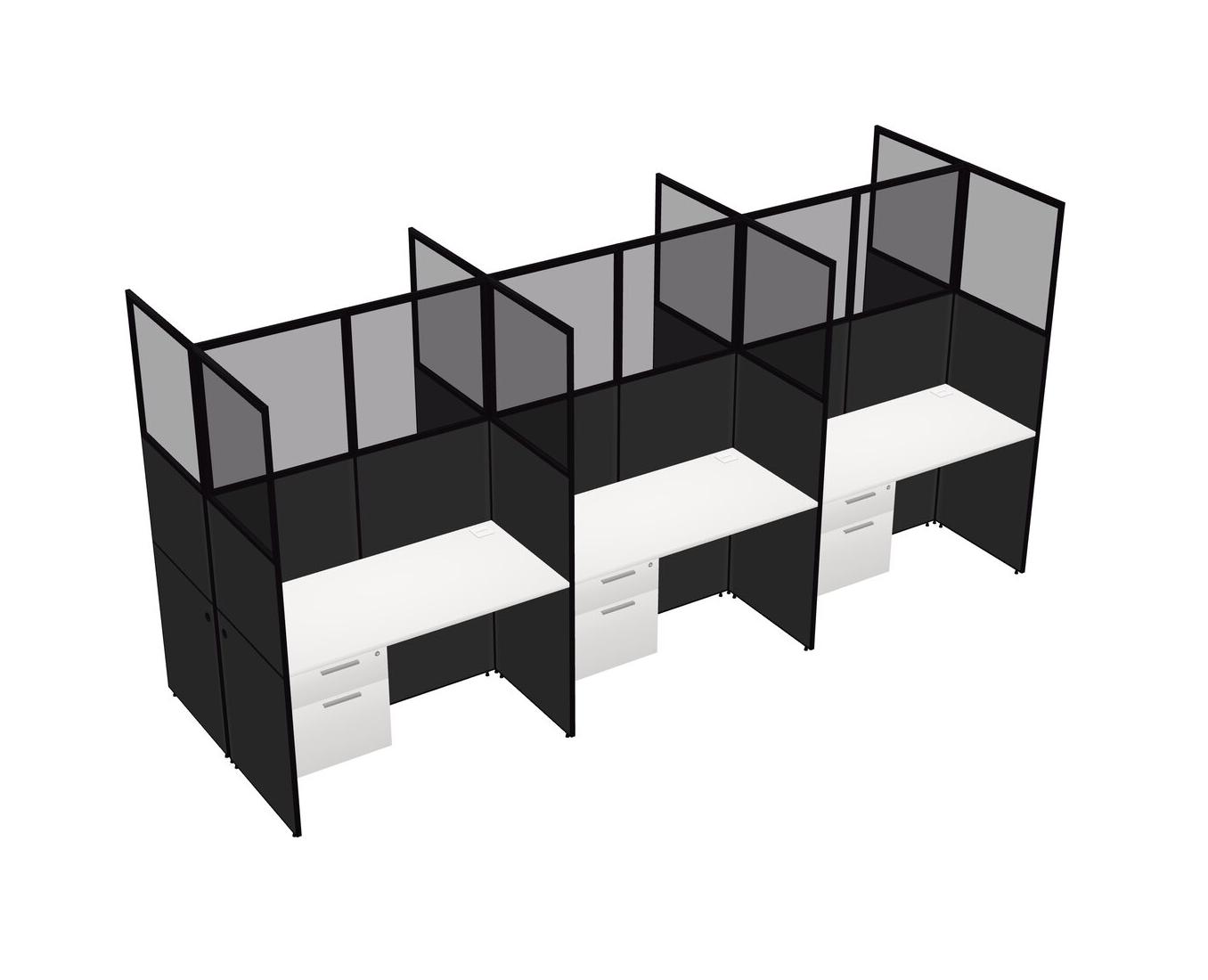 White Shared Rectangular Office Cubicle Panel System With Hanging Drawers For 6 Persons