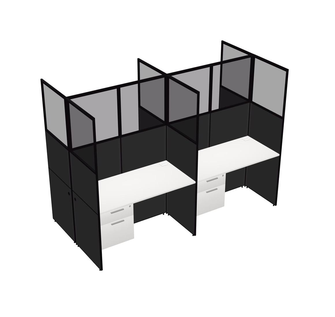White Shared Rectangular Office Cubicle Panel System With Hanging Drawers For 4 Persons