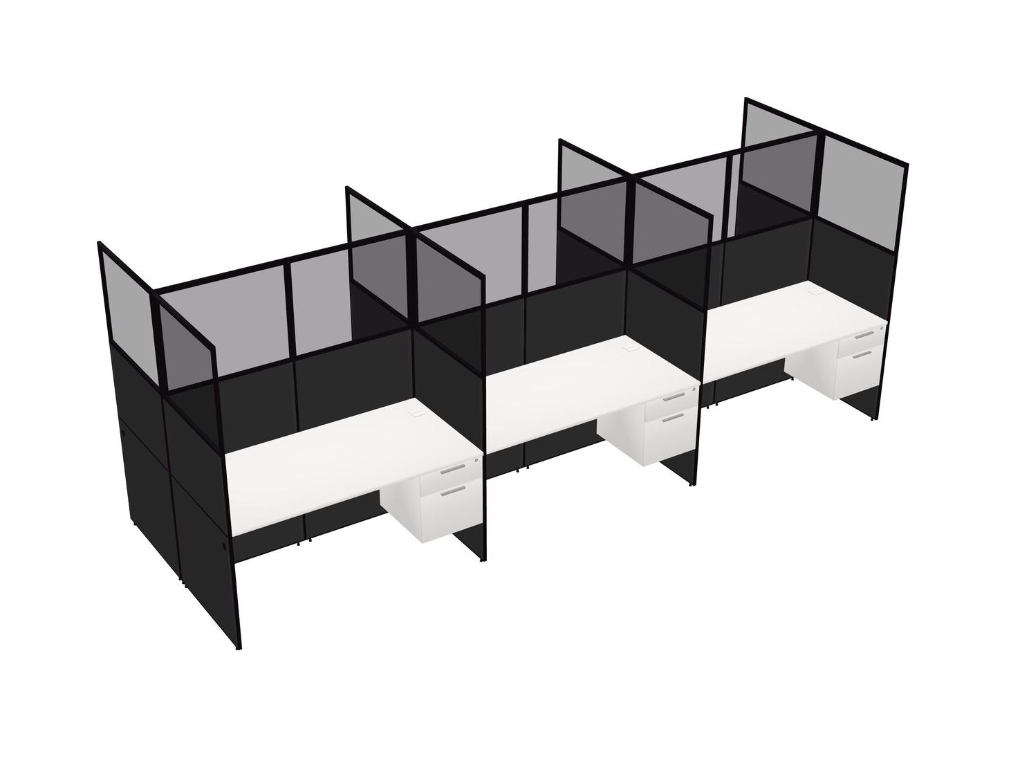 White Shared Rectangular Office Cubicle Panel System With Hanging Drawers For 6 Persons