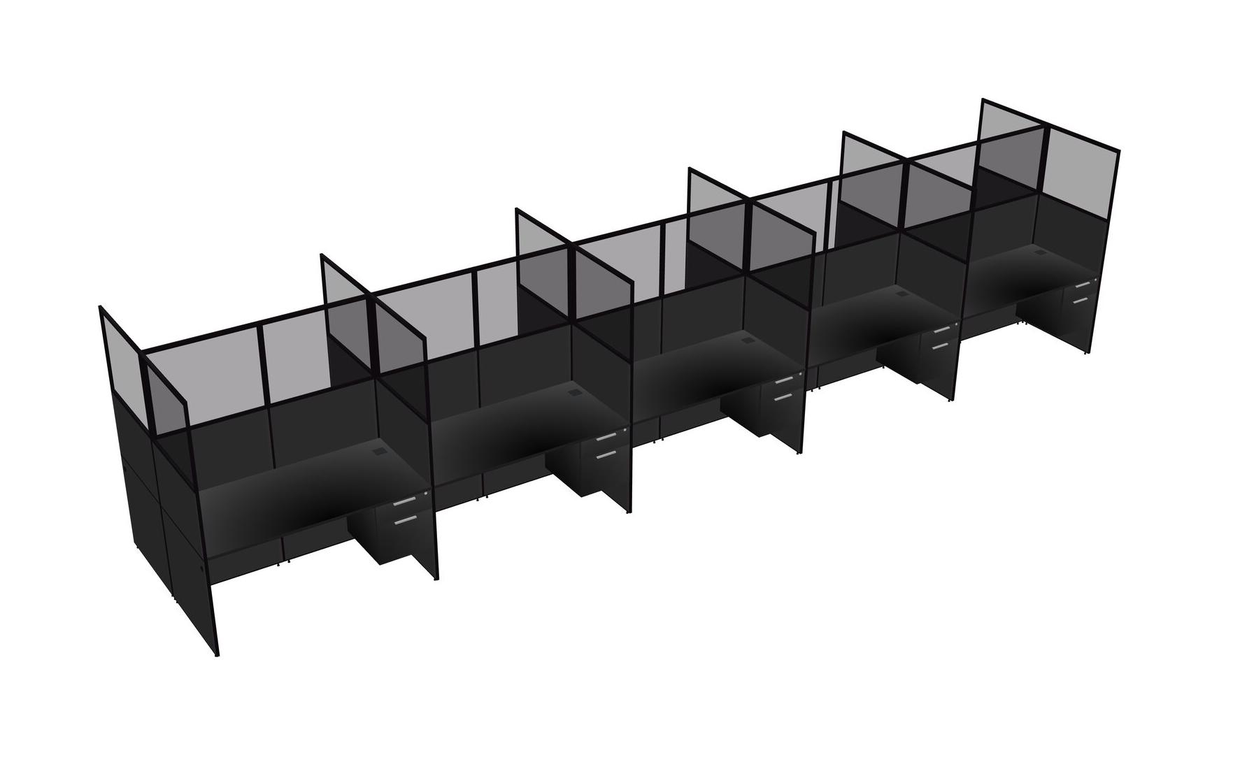 Black Shared Rectangular Office Cubicle Panel System With Hanging Drawers For 10 Persons