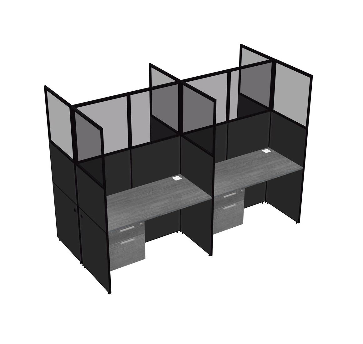Grey Shared Rectangular Office Cubicle Panel System With Hanging Drawers For 4 Persons