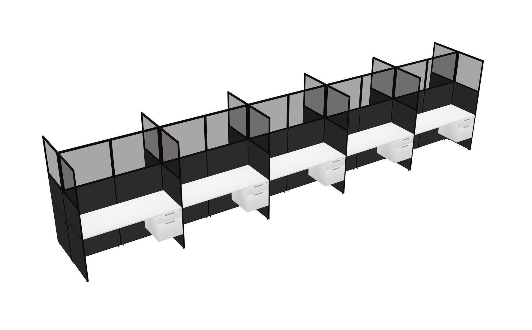 White Shared Rectangular Office Cubicle Panel System With Hanging Drawers For 10 Persons