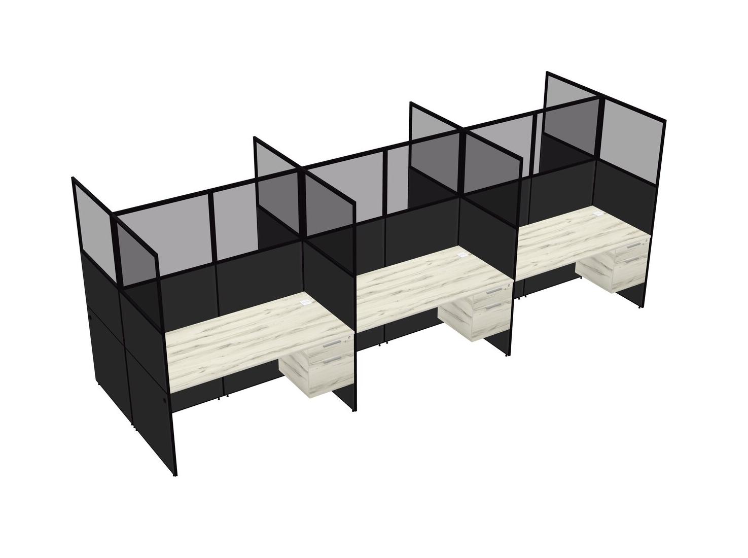 Heinne Holz Shared Rectangular Office Cubicle Panel System With Hanging Drawers For 6 Persons