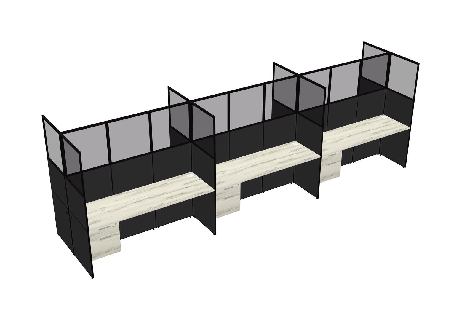 Heinne Holz Shared Rectangular Office Cubicle Panel System With Hanging Drawers For 6 Persons