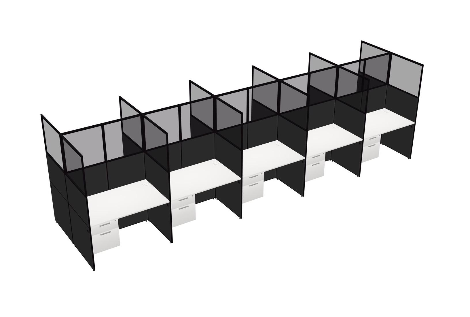 White Shared Rectangular Office Cubicle Panel System With Hanging Drawers For 10 Persons