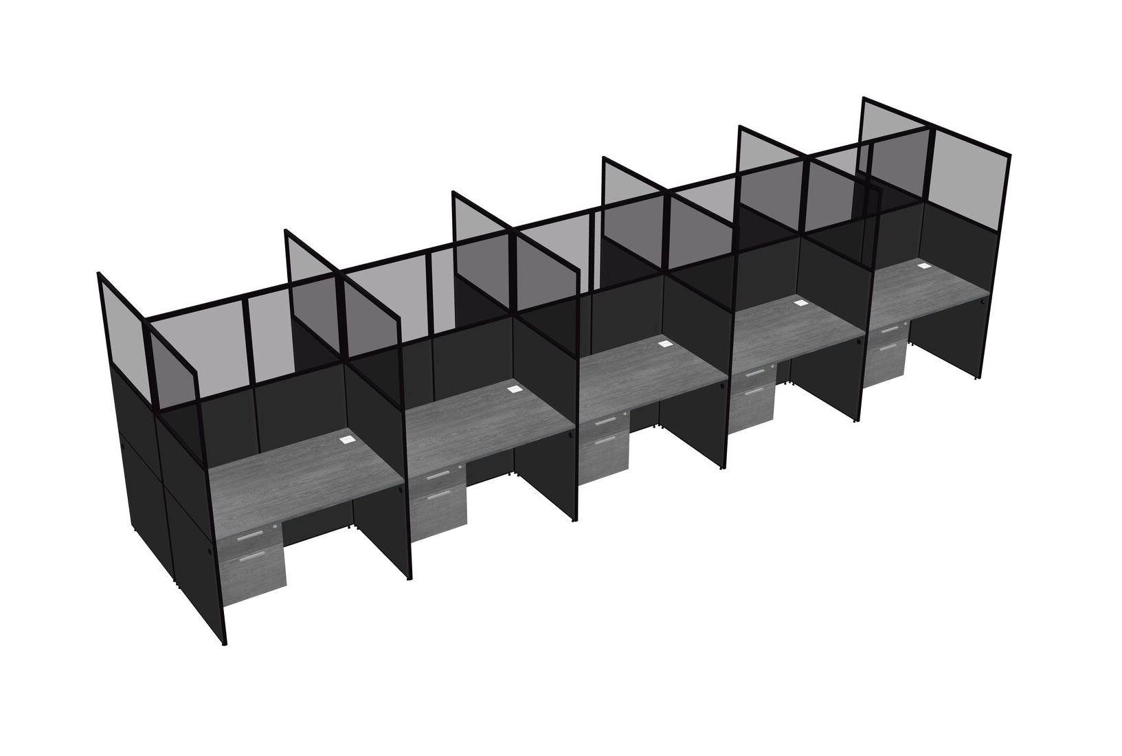 Grey Shared Rectangular Office Cubicle Panel System With Hanging Drawers For 10 Persons