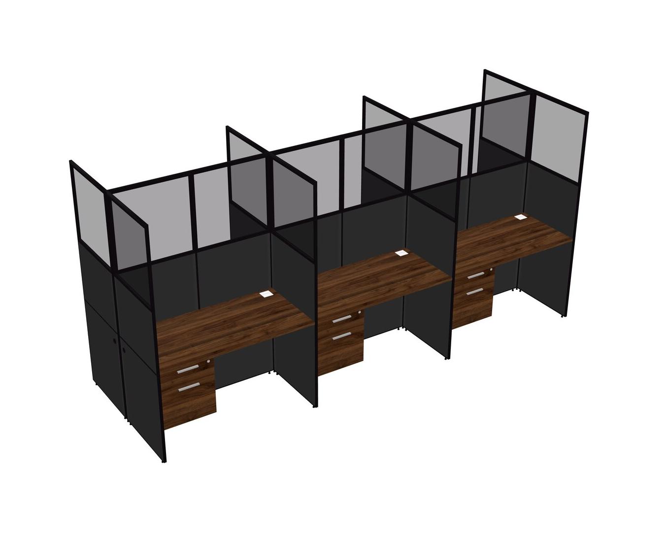 Columbia Walnut Shared Rectangular Office Cubicle Panel System With Hanging Drawers For 6 Persons