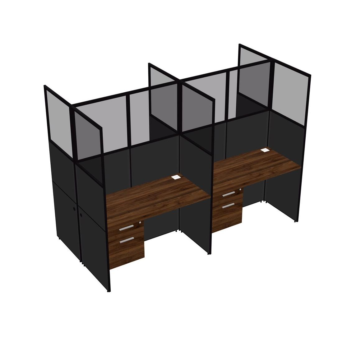 Columbia Walnut Shared Rectangular Office Cubicle Panel System With Hanging Drawers For 4 Persons