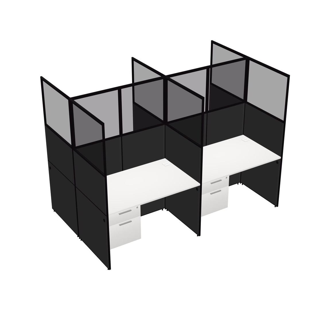 White Shared Rectangular Office Cubicle Panel System With Hanging Drawers For 4 Persons