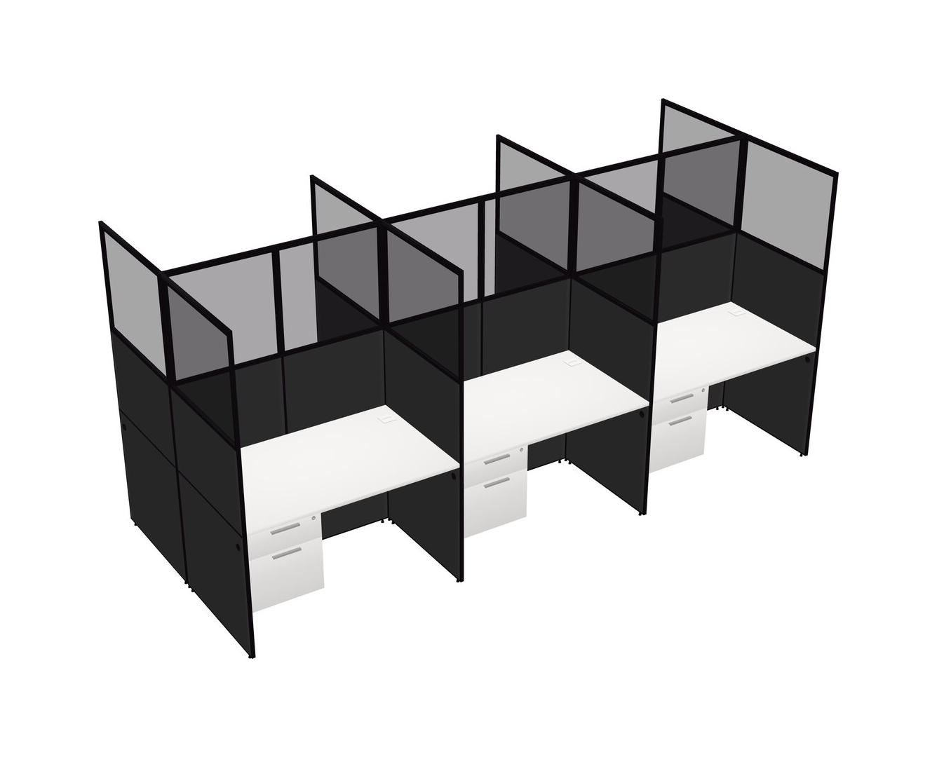 White Shared Rectangular Office Cubicle Panel System With Hanging Drawers For 6 Persons