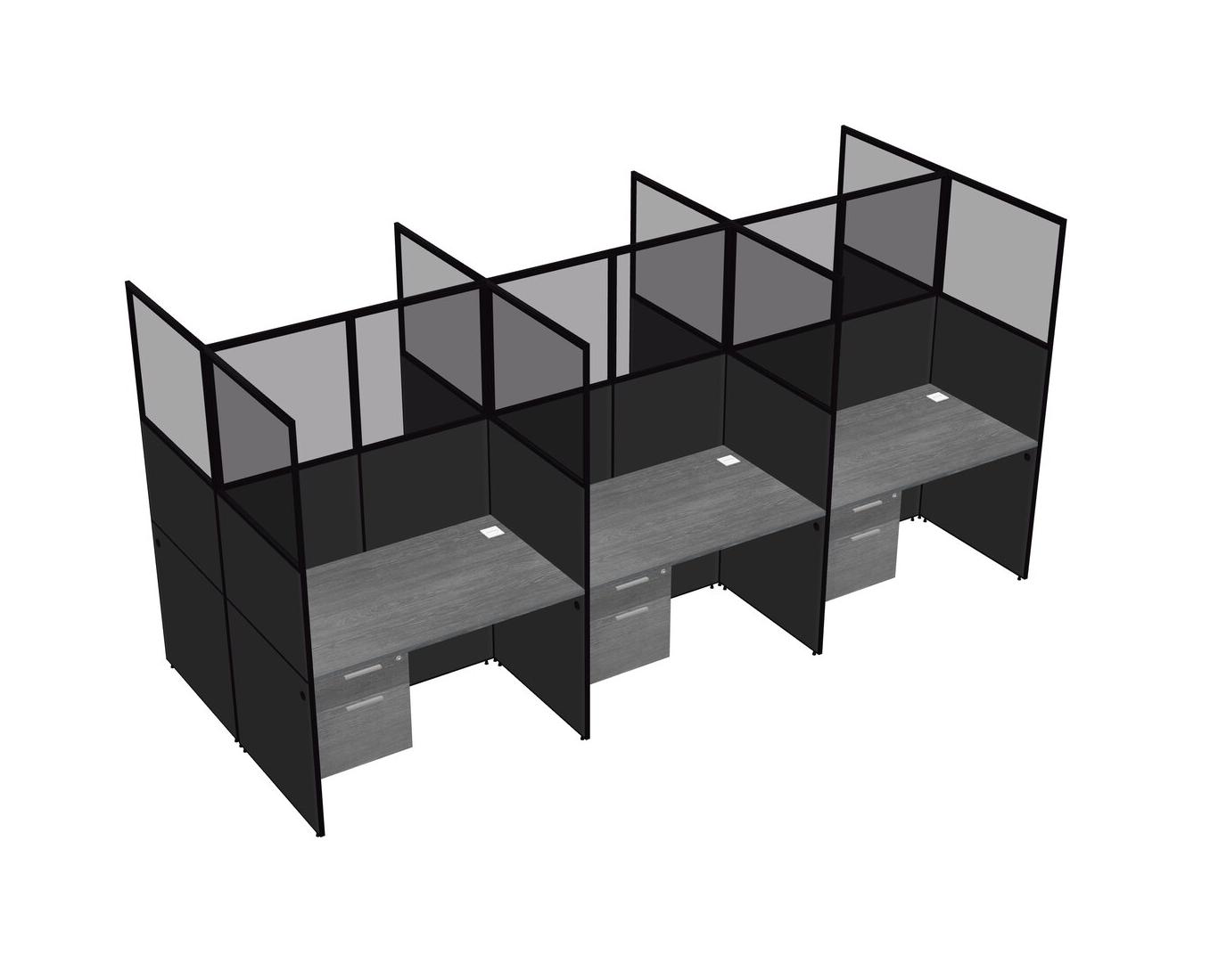Grey Shared Rectangular Office Cubicle Panel System With Hanging Drawers For 6 Persons