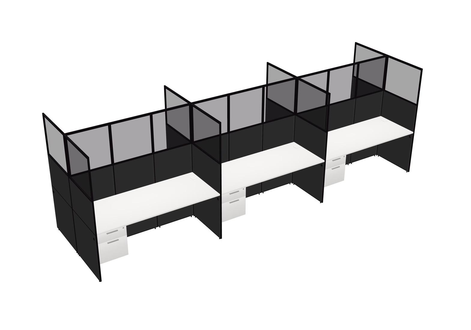 White Shared Rectangular Office Cubicle Panel System With Hanging Drawers For 6 Persons