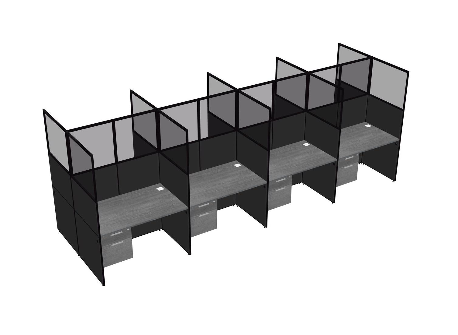 Grey Shared Rectangular Office Cubicle Panel System With Hanging Drawers For 8 Persons