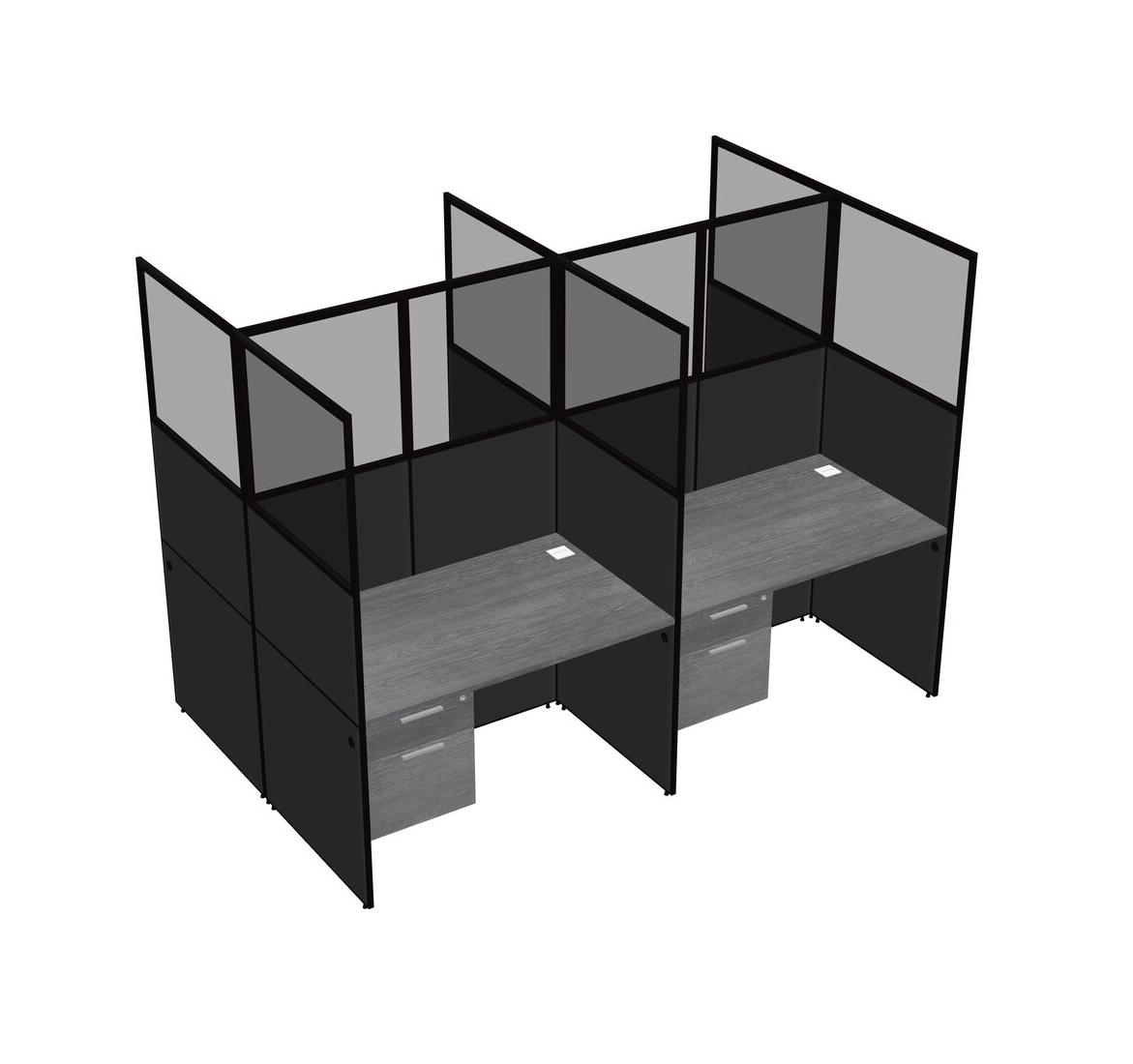 Grey Shared Rectangular Office Cubicle Panel System With Hanging Drawers For 4 Persons