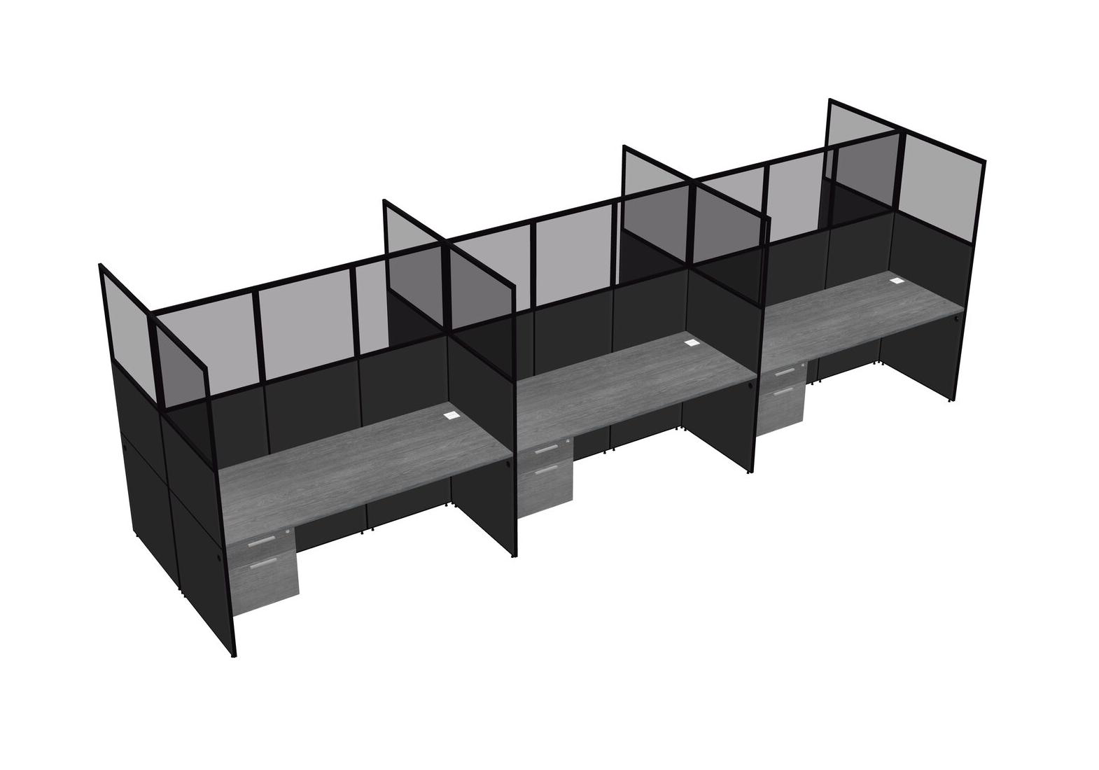 Grey Shared Rectangular Office Cubicle Panel System With Hanging Drawers For 6 Persons
