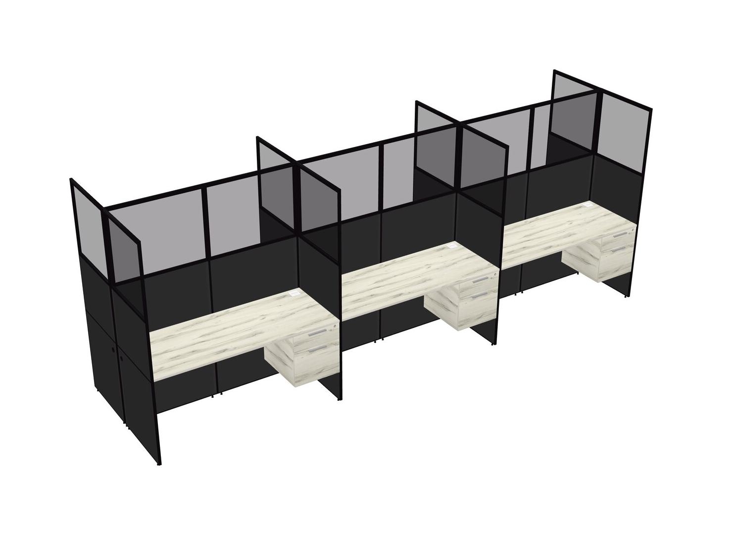 Heinne Holz Shared Rectangular Office Cubicle Panel System With Hanging Drawers For 6 Persons