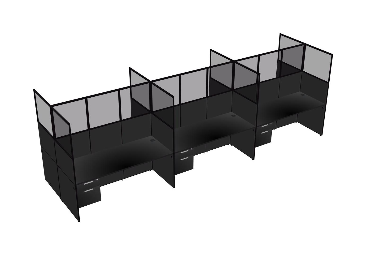 Black Shared Rectangular Office Cubicle Panel System With Hanging Drawers For 6 Persons