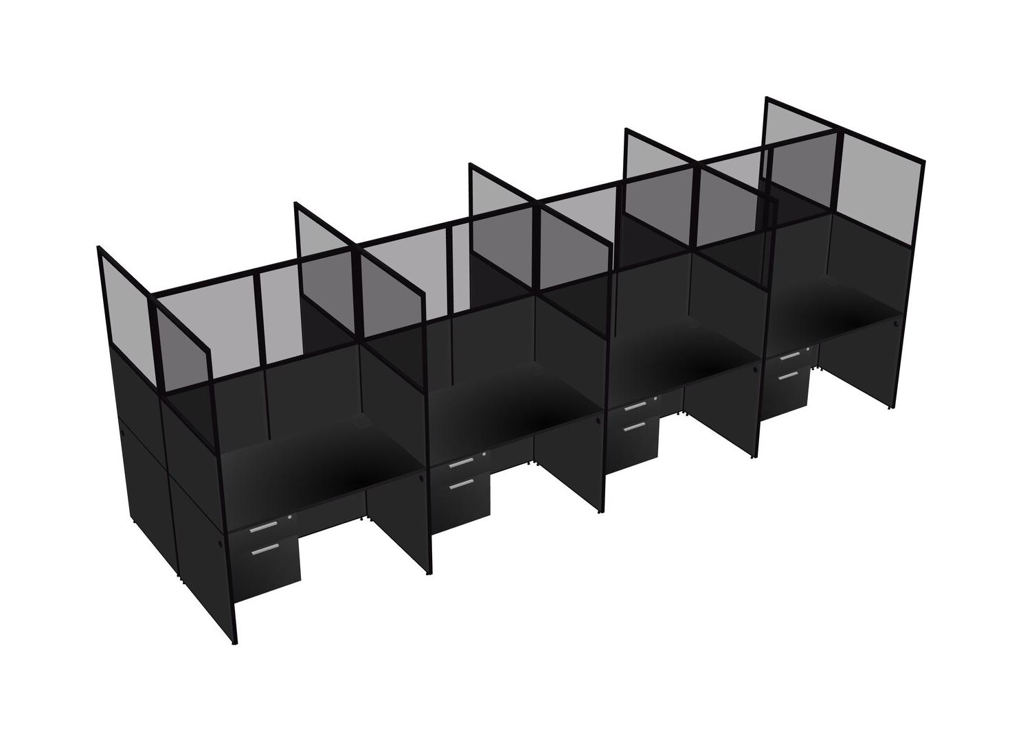 Black Shared Rectangular Office Cubicle Panel System With Hanging Drawers For 8 Persons