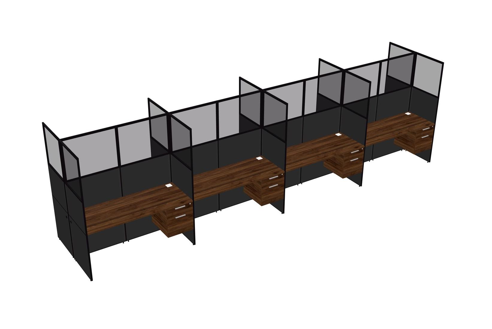 Columbia Walnut Shared Rectangular Office Cubicle Panel System With Hanging Drawers For 8 Persons