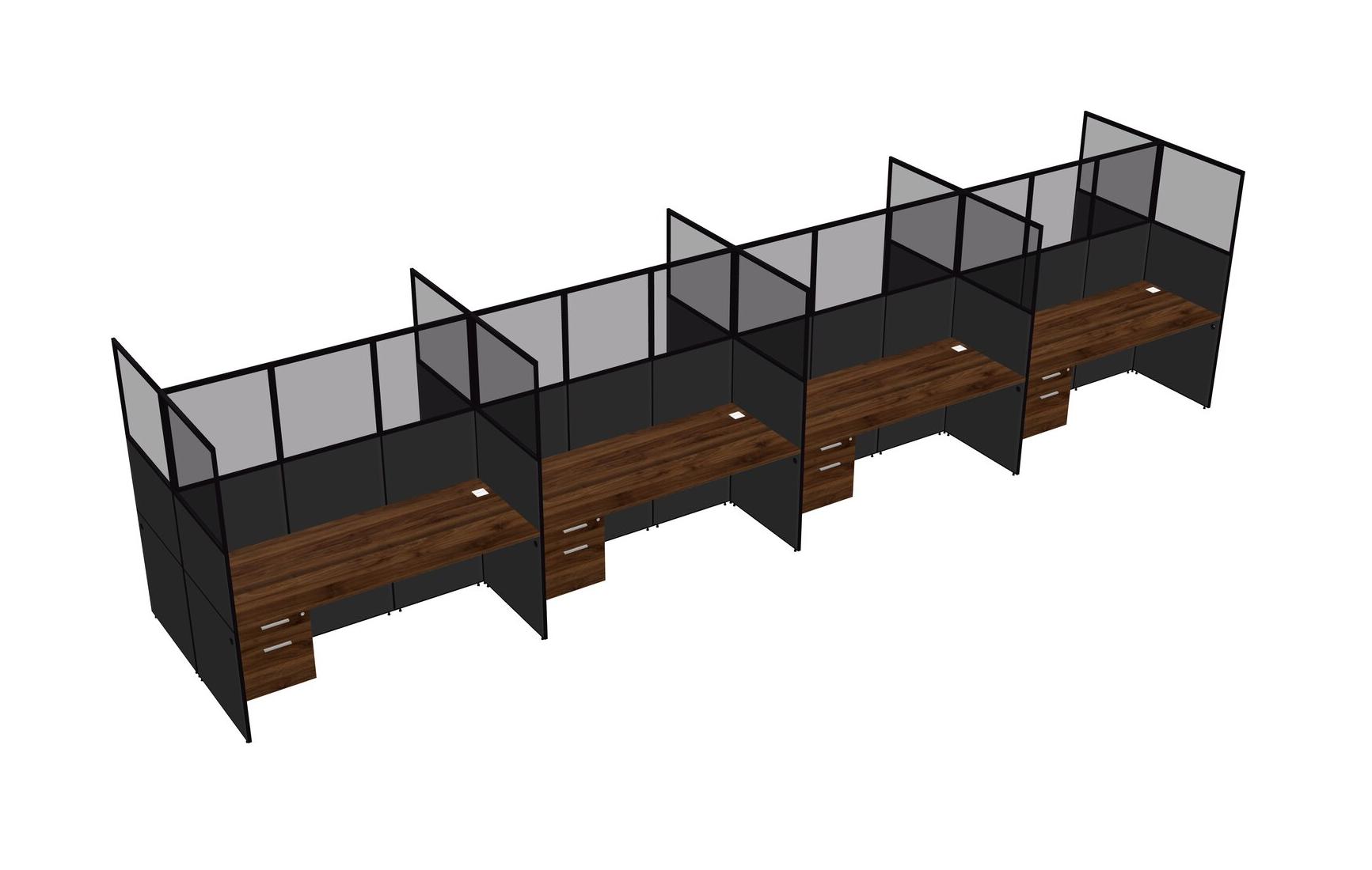 Columbia Walnut Shared Rectangular Office Cubicle Panel System With Hanging Drawers For 8 Persons