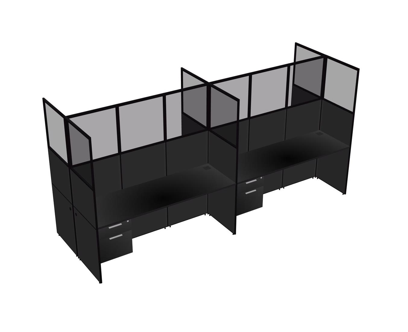 Black Shared Rectangular Office Cubicle Panel System With Hanging Drawers For 4 Persons