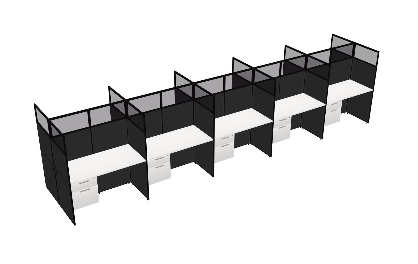 White Shared Rectangular Office Cubicle Panel System With Hanging Drawers For 10 Persons