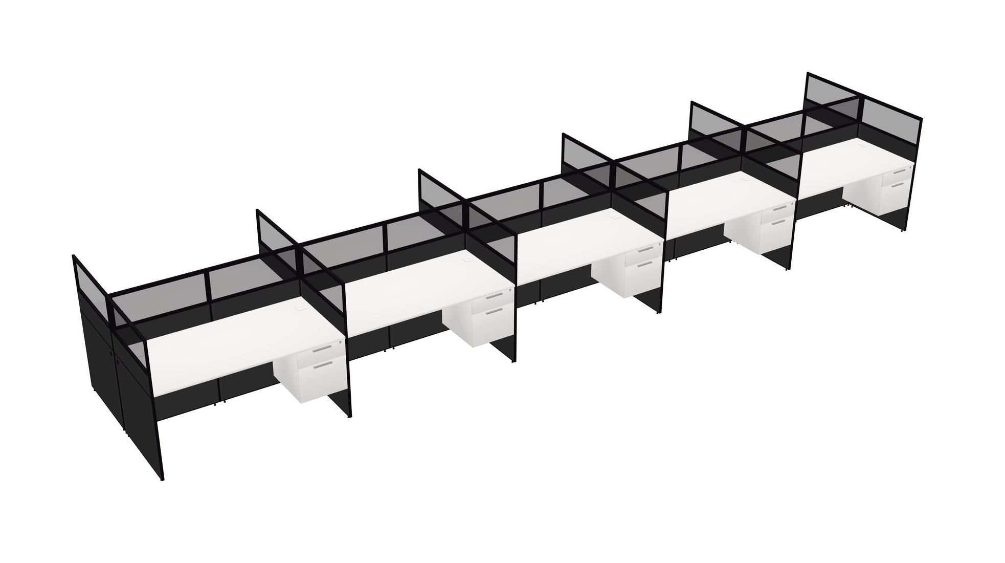 White Shared Rectangular Office Cubicle Panel System With Hanging Drawers For 10 Persons