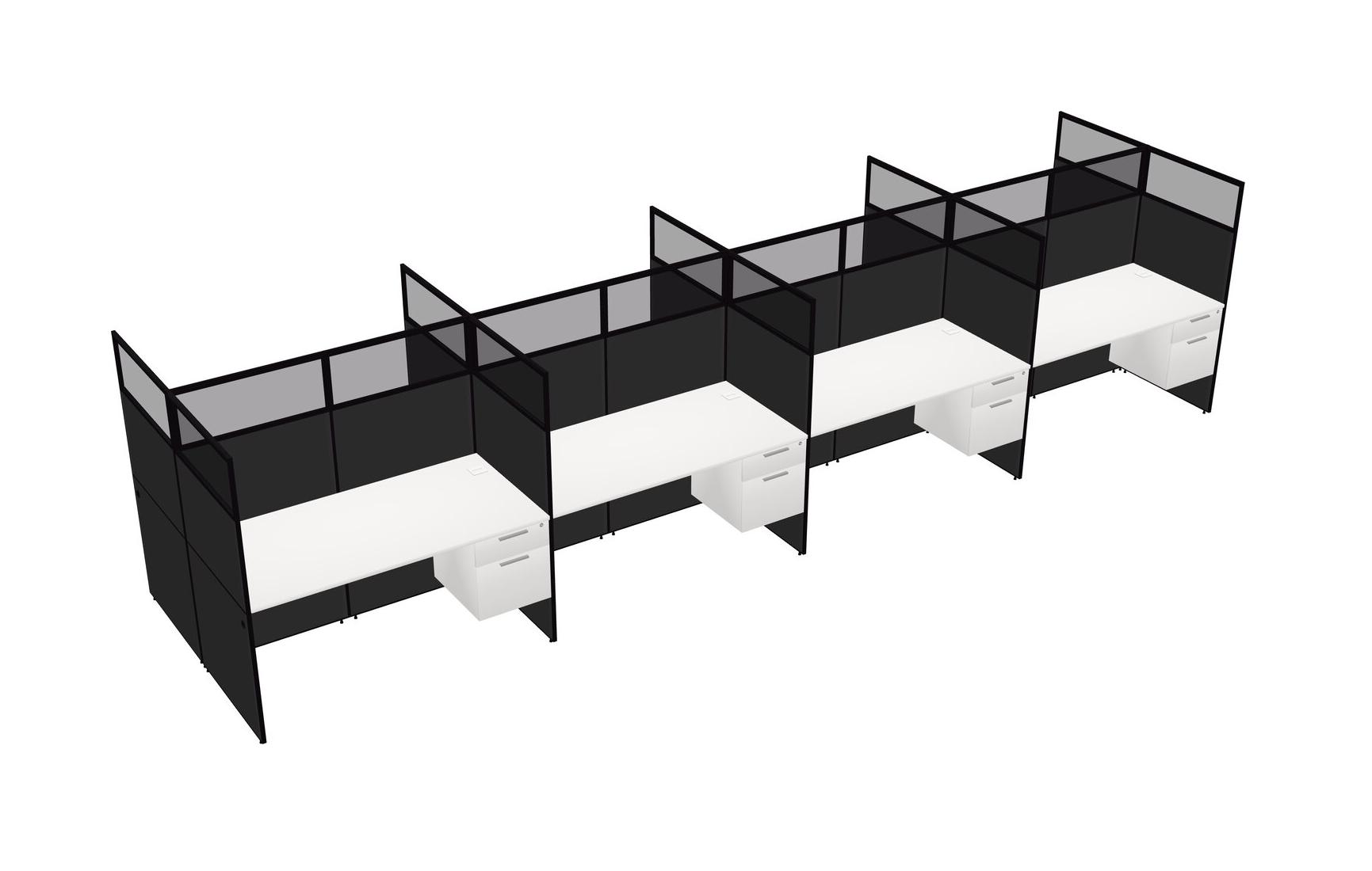 White Shared Rectangular Office Cubicle Panel System With Hanging Drawers For 8 Persons