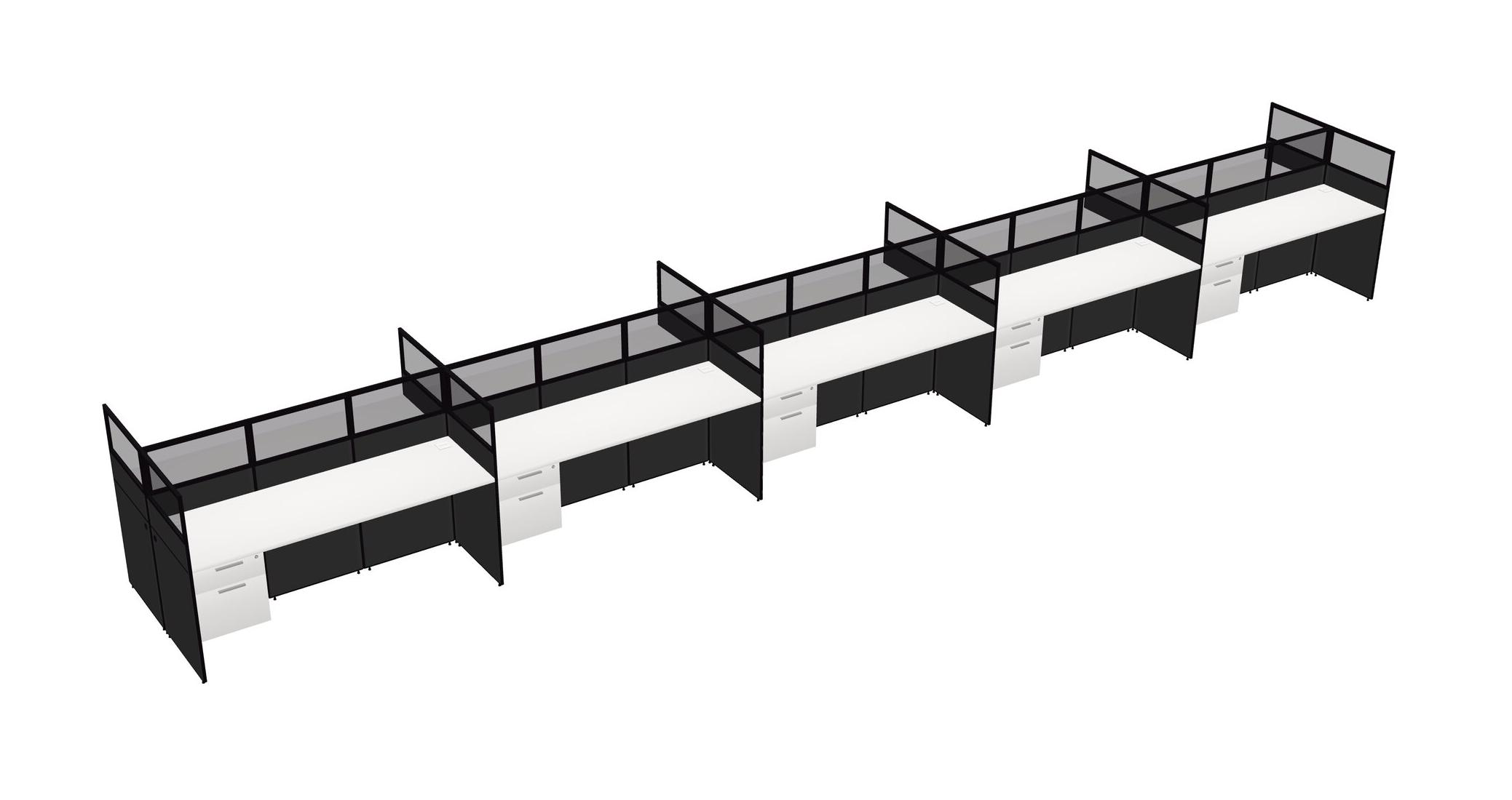 White Shared Rectangular Office Cubicle Panel System With Hanging Drawers For 10 Persons